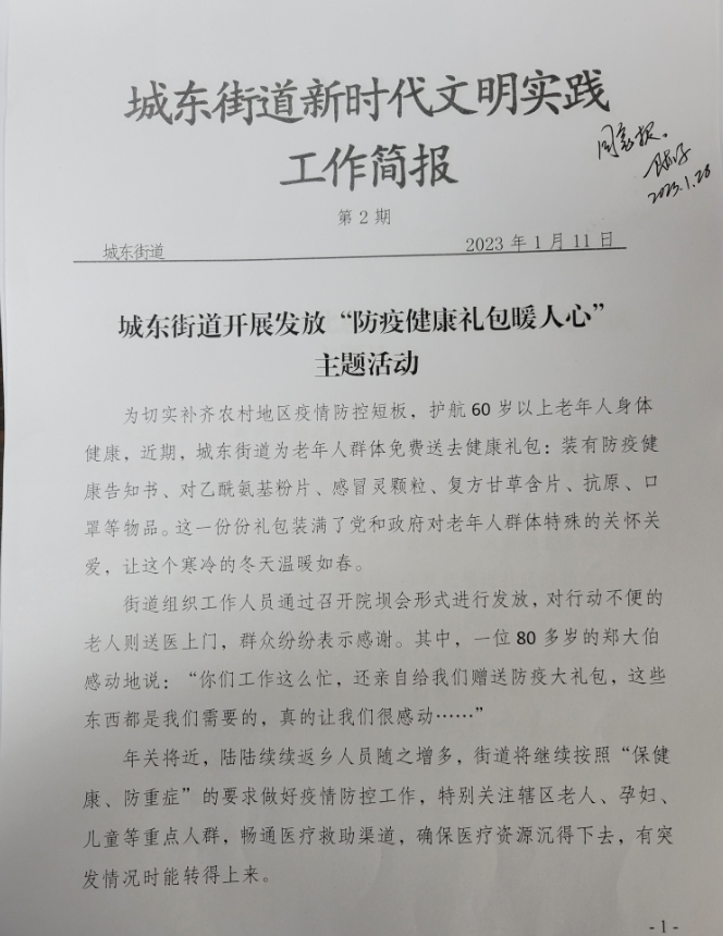 城东街道开展发放“防疫健康礼包暖人心” 主题活动