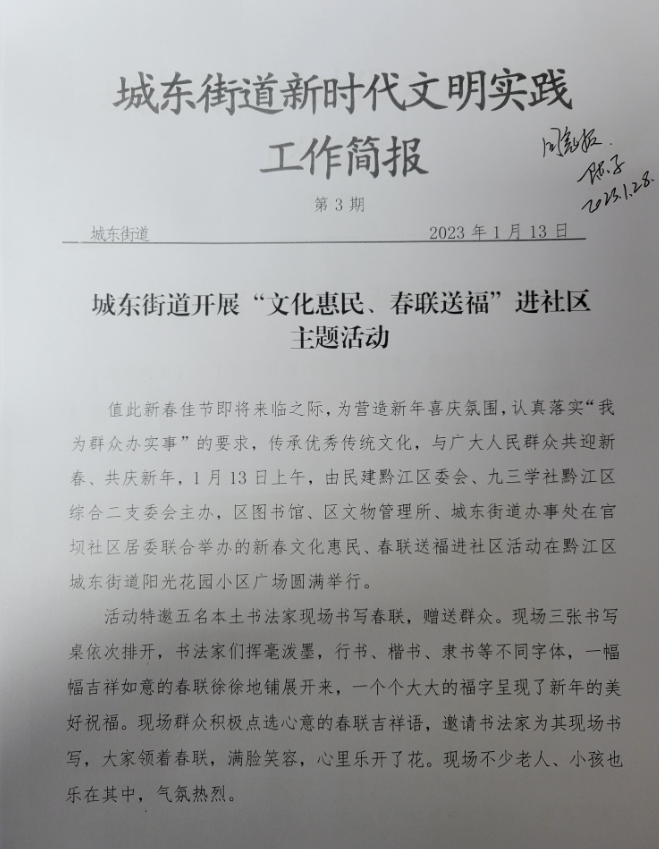 城东街道开展“文化惠民、春联送福”进社区 主题活动