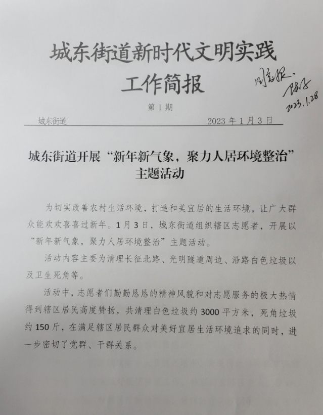 城东街道开展“新年新气象,聚力人居环境整治” 主题活动