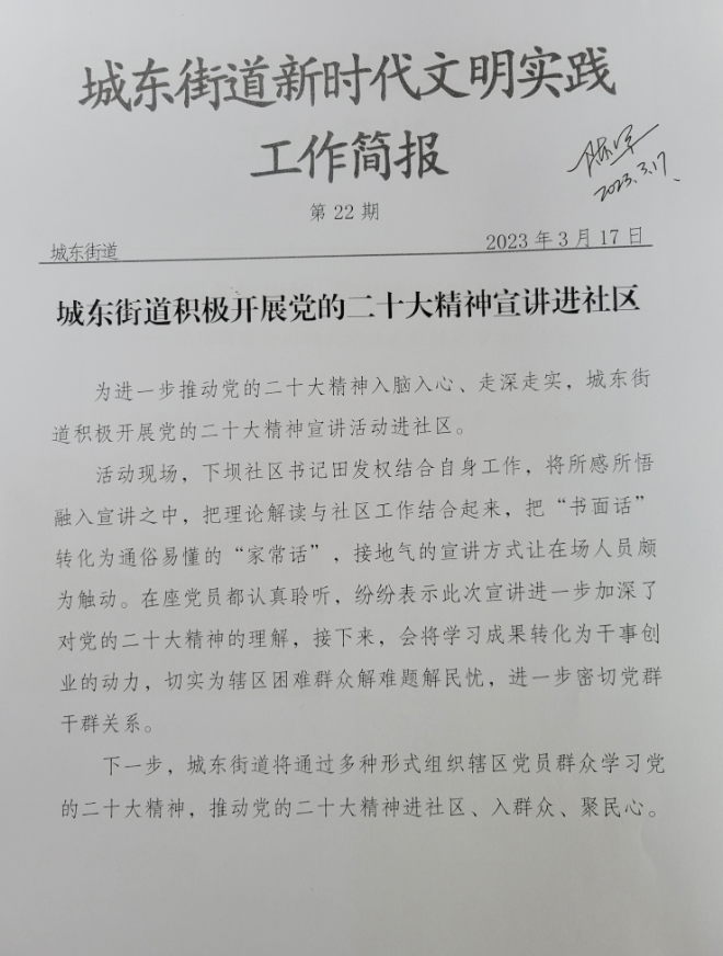 城东街道积极开展党的二十大精神宣讲进社区