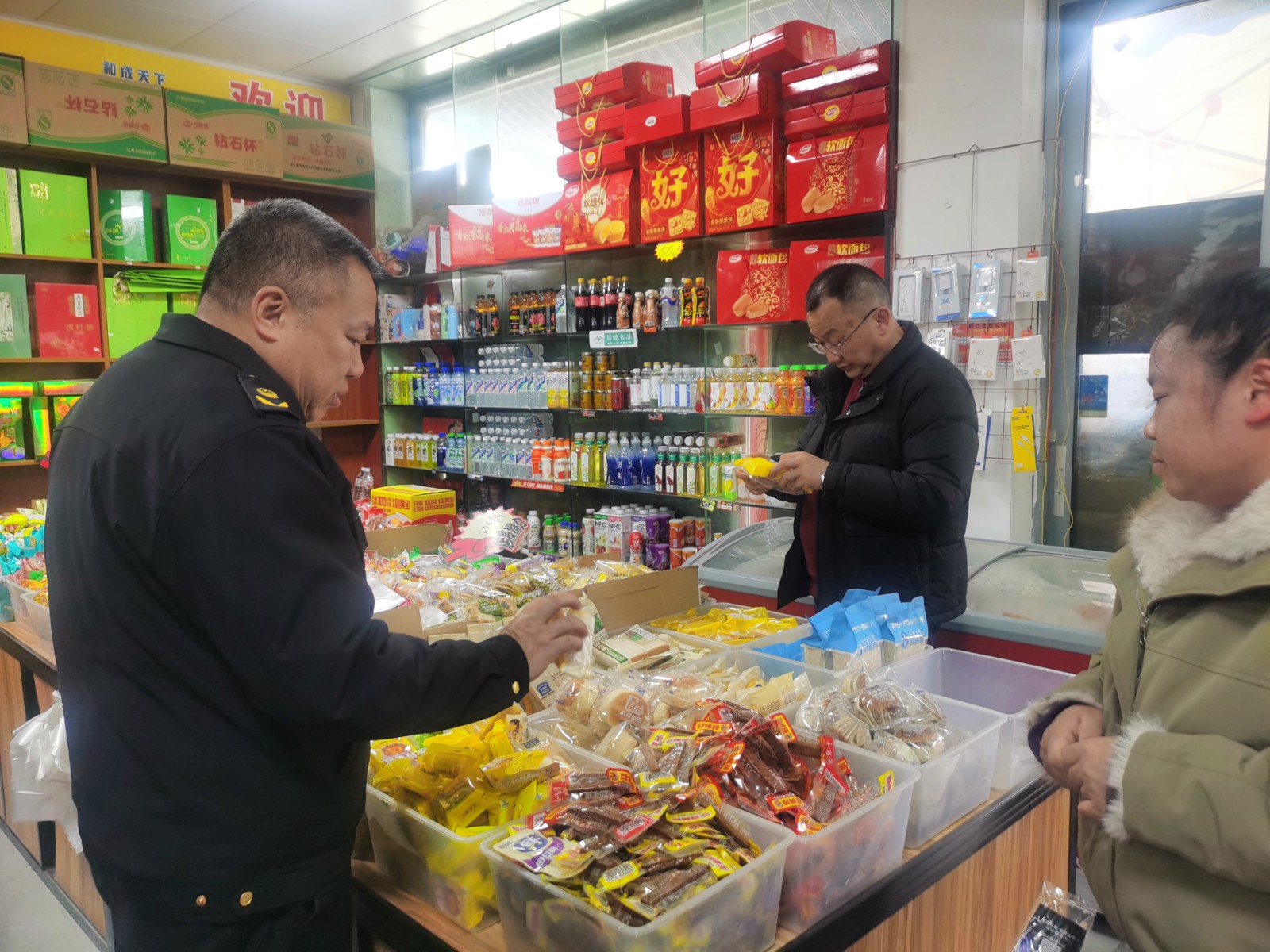 为切实保障春节期间人民群众饮食安全,有效化解食品安全风险,营造安全、放心、祥和的节日消费环境,尖山村新时代文明实践站在曾乡长的带领下,和执法队一起开展节前食品安全专项检查行动。